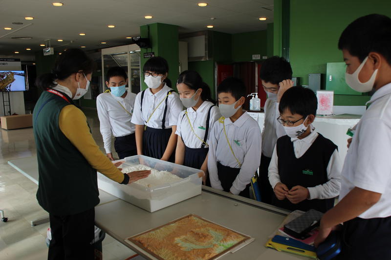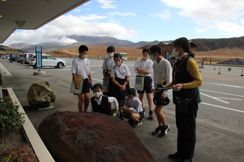 11月19日(木)の午前中、6年生は、大津町のスクールバスで阿蘇に行き、阿蘇火山と震災遺構の学習を行いました。理科の現地学習です。