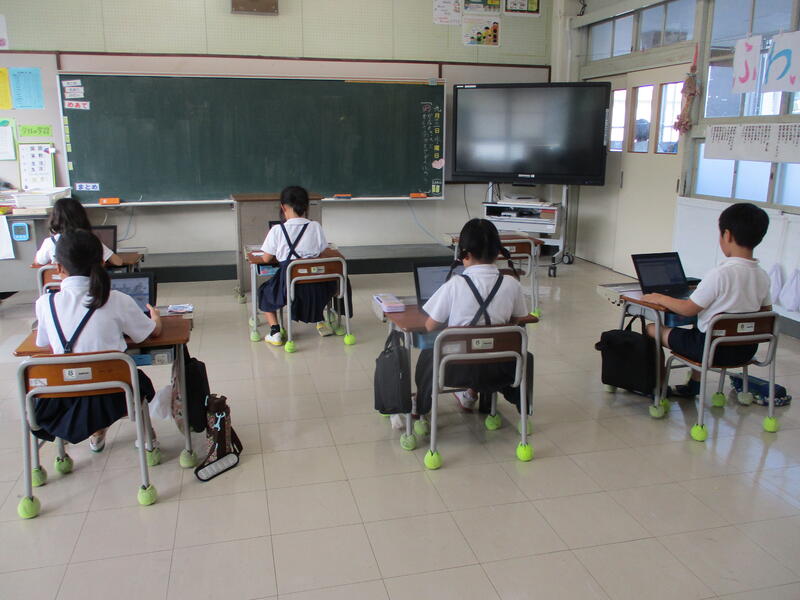 大津町の小中学校では、盛んにタブレットを活用しています。