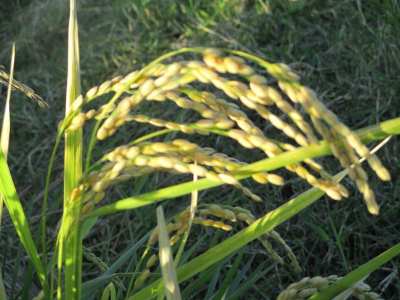 おかげで、もち米の稲はよく生長し、稲穂も実をつけ、頭を垂れています。