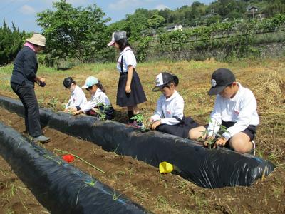 1、2年生で、大田黒さんが作ってくれた畑に植えます。
