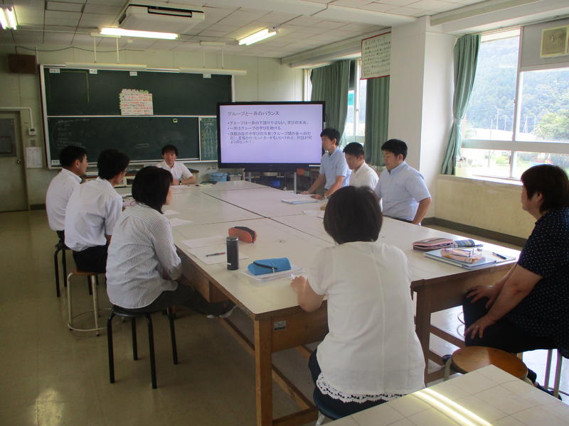 8月5日(月)の午前中に、鹿児島の大学から准教授をお招きし、「学びの共同体」についての校内研修を行いました。一人も残さず子どもに学ばせるための真のグループ学習のあり方について学ぶことができました。質問会では、本校職員からの多くの質問に丁寧に答えていただき、本校の研究も深まりを見せました。夏休み明けの授業にしっかり生かしていきます。