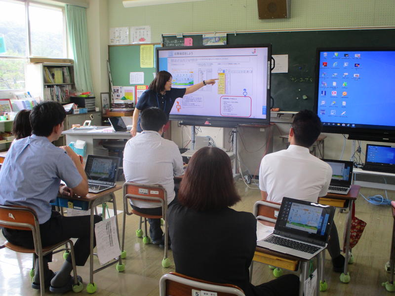 7月8日(月)の5校時に4年生で算数の研究授業を行いました。キャリア教育の視点をもとに授業を行うことと電子黒板とタブレットを効果的に用いることで、子どもたちが学習に意欲的取り組むことを目指しました。本日の授業では、「かかわる力」「やりぬく力」の2つを位置づけました。授業と研究会には、大津中学校の浦田校長を講師に招き、キャリア教育について職員の認識を深めることができました。