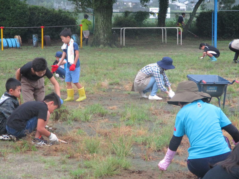 8月24日(土)の7:00~8:30で、PTA美化作業が行われました。雨が心配される中、ちょうど雨も止み、草も引きやすくPTA美化作業が実施されました。夏休みの間、気温も高く、雨も多かったせいもあり、運動場に草がすごく生えていました。職員で草刈り機での草刈りや、無害の除草剤を撒き続けてきましたが、草は伸びっぱなしでした。子どもたちもよく頑張りました。保護者、学校応援団、地域の皆様、本当に助かりました。ありがとうございました。