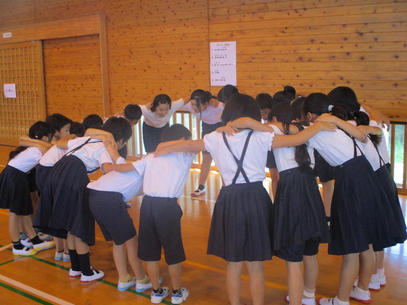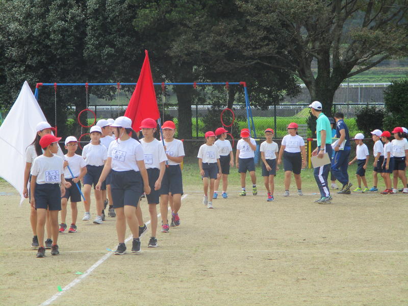 9月11日午前中、運動会に向けて、第1回目の全体練習が始まりました。入場行進、並び方、開会の言葉、優勝旗返還、誓いの言葉、競技上の注意、準備運動などを練習しました。暑い中、子どもたちは一生懸命頑張りました。大津中から、職場体験で3人の中学生も応援に駆けつけてくれました。職場体験は、今日から13日まで3日間です。