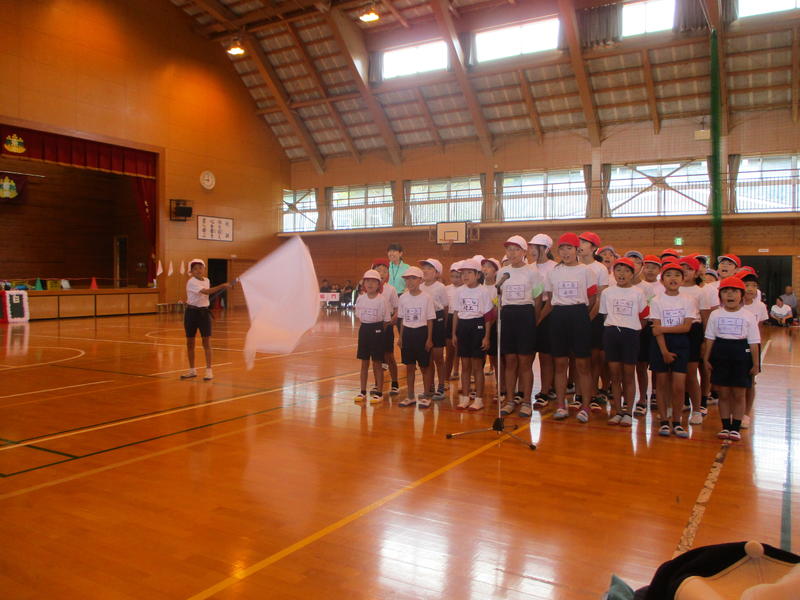 9月21日(土)に、大運動会を開催しました。台風が近づく中でしたが、雨は降らず良かったと思っていたら、ものすごい風でした。台風はまだ遠かったのですが、気温差による「まつぼり風」が強く、危険を感じましたので、安全を考慮して体育館での開催としました。