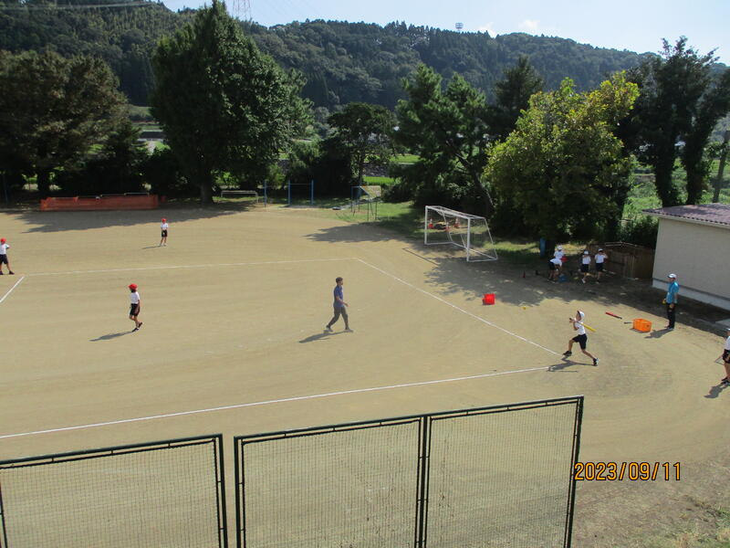 本日(9/11)の5時間目、5・6年生は運動場でソフトボールをしていました。野球やソフトボール系の運動は経験が少なく、ルールを覚えること、またそれを考えて動くことなど、とても難しそうでした。