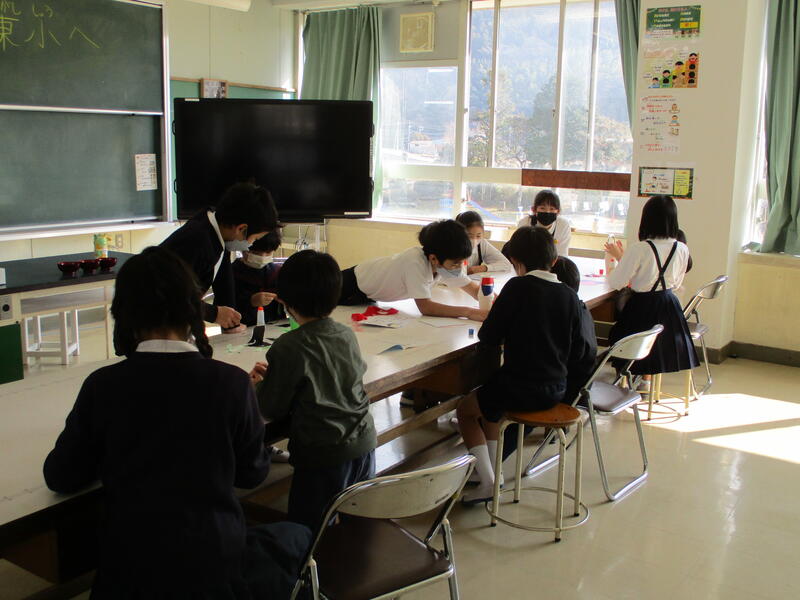 本校の3年以上は複式学級ですが、この時間はそれぞれ学年単独で学ぶ時間としました。子どもたちは、担任や学習支援員の他に、ALTや英語専科の先生方と楽しく学んでいました。
