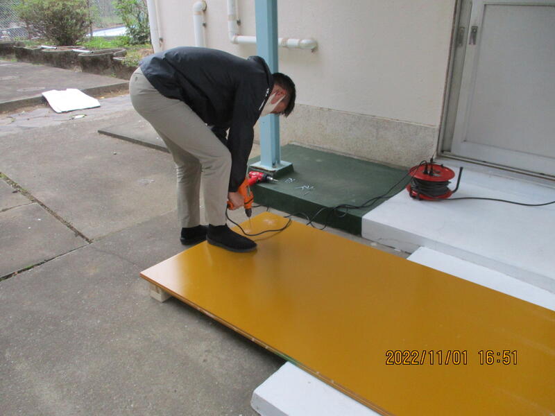 本日(11/1)の放課後、体育主任が何かを作っていました。