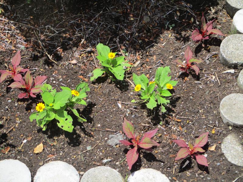 学校近くの信号の下の花壇にきれいな花。また、そこから校舎までの通学路の両側にきれいな花。400本を超える花々。