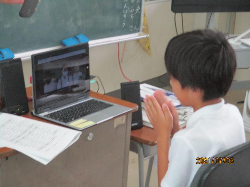 この日は、全員、タブレットで全校集会に参加しました。音楽室と各教室でのオンラインでした。夏休みも8月18日に、各クラスごとに学校と各家庭においてタブレットでつながる予定です。