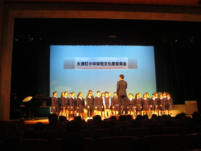 11月26日(火)に、大津町生涯学習センターで、大津町小中学校文化祭音楽会が開催されました。大津東小学校は、後半の部で、11時過ぎに合奏と合唱の演奏を披露しました。他の小中学校も上手でしたが、本校の子どもたちも、とっても上手でした。すばらしい演奏でした。1年生から4年生全員で参加しました。