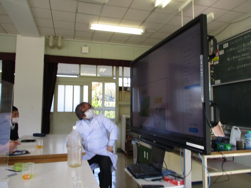 学校薬剤師の花岡先生を講師としてお迎えし、実験を交えた講話を行っていただきました。