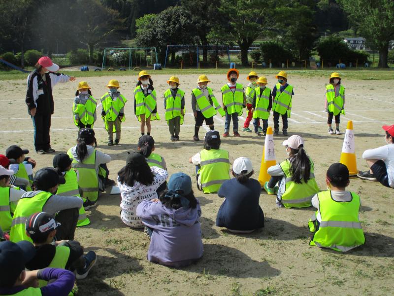 4月15日(木)1校時に安全教室を行いました。登下校での横断歩道の渡り方など、実技を通して学習しました。