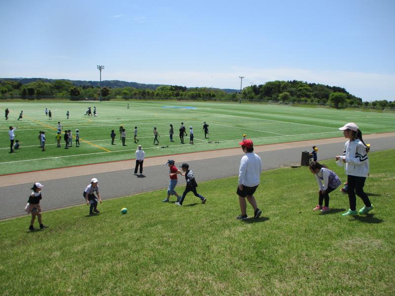 歓迎会が終わったら、大津町スポーツの森まで歓迎遠足。