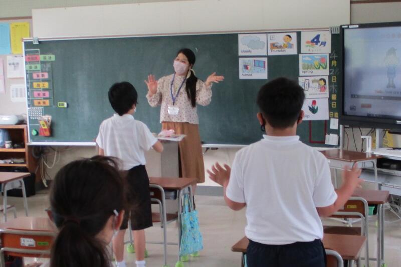 本日(4/28)は、平川先生(ALT・外国語指導助手)と奥村先生(英語専科)をお招きして、3・4年生は外国語活動を、5・6年生は外国語の教科を指導いただきました。