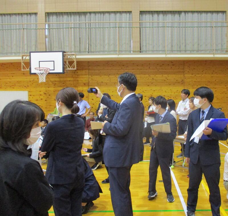 本日(10/2)、体育館に5・6年生の特設教室を作りました。これは、研究発表会(10/20)を見据え設置したものです。