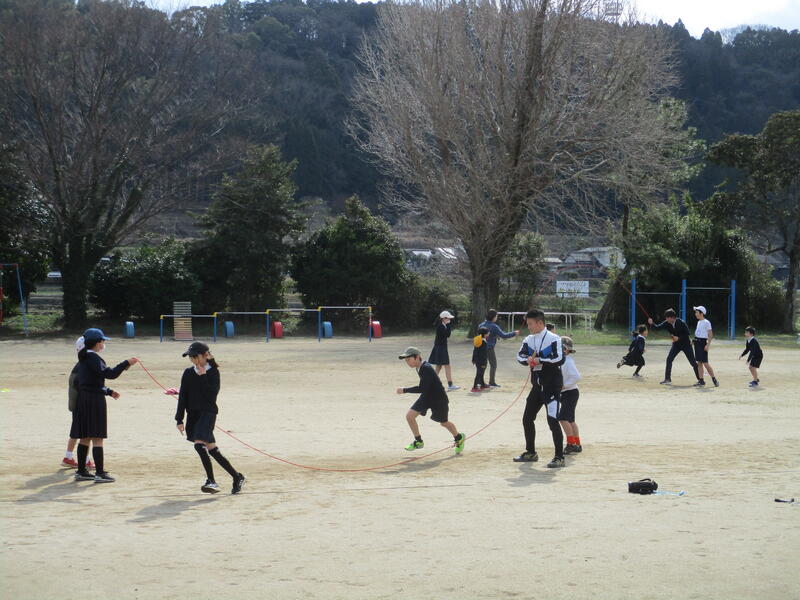 本日(2/7)、昼休みに縦割り班で長縄跳びの練習をしました。