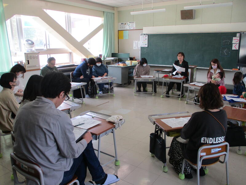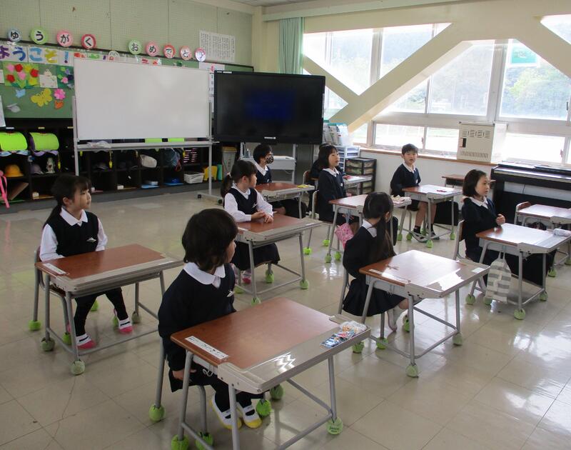 本日(4/11)の1時間目に、1・2年生は国語の学習をしていました。1年生も2年生も初めての複式授業ですが、担任の後藤先生が学習支援指導員の春木先生と連携して、上手に指導されていました。