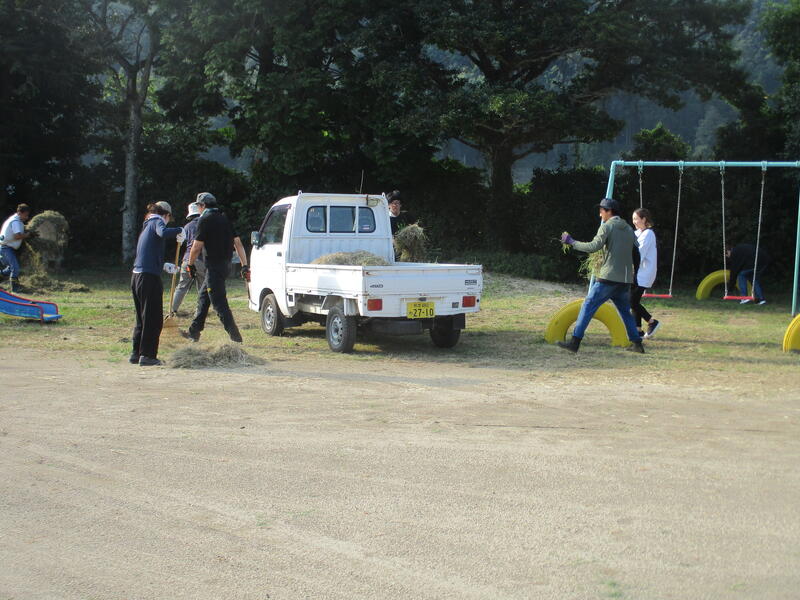 軽トラで草を運んでいただきますが、安全第一で1時間作業をしたいと思います。ご協力のほど、よろしくお願いします。