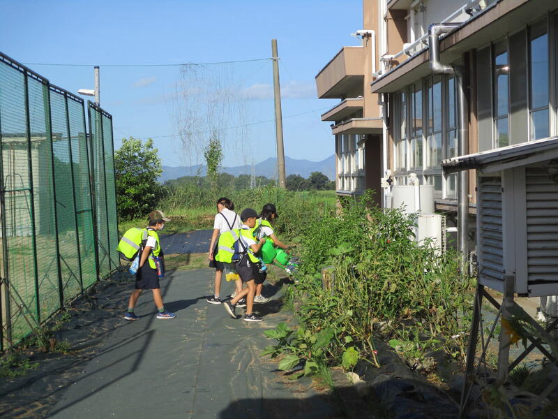 7時から草刈り機を稼働させ、7時半から1時間みんなで作業する予定としていました。職員が6時過ぎに学校に着くと、既に草刈り機の音が校庭に響いていました。