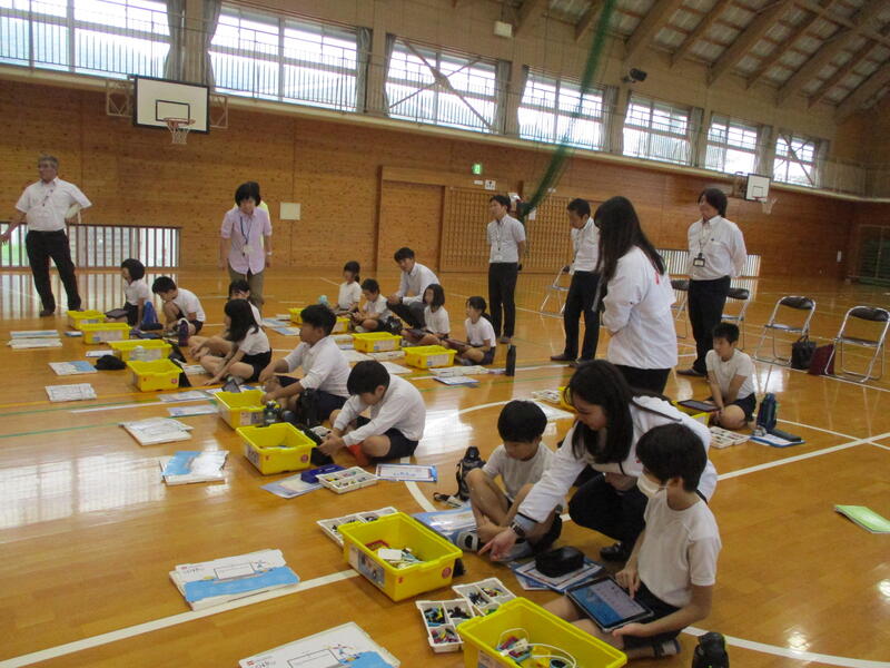 本日(10/8)、3・4年生はJ-WINDプログラミング教室をしました。講師は、JPOWER(坂田さん他4名)の方々です。