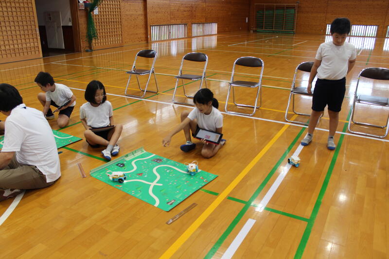 そして、プログラム通りに動く自動車づくりです。組み立てに戸惑うこともありましたが、設計図を見ながら作りました。実際に動く自動車を前に、