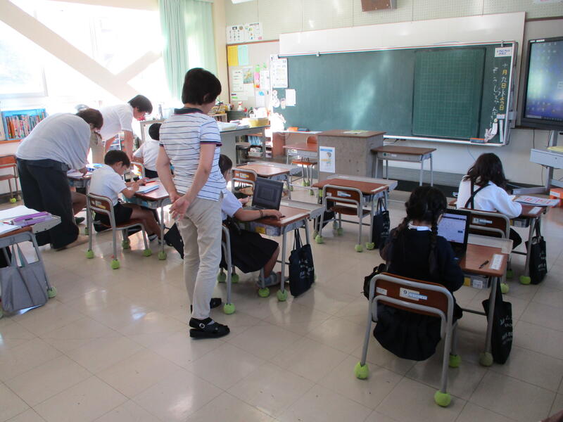 1・2年生はミライシードを使って問題を解き、3・4年生はタイピング練習を、5・6年生は運動会の所信表明を打ち込んでいました。それぞれの学年の活用方法から、子どもたちの成長が見られます。効果的な活用のために、大切なことを身に付けさせていきます。