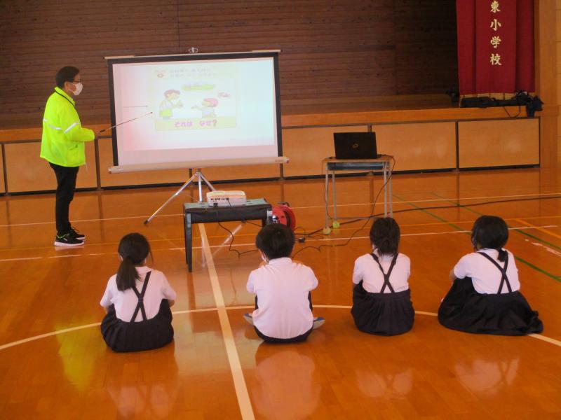 子どもたちは、真剣に聴き、実技を行いました。安全を学ぶ大切な機会となりました。交通安全協会の皆様、ありがとうございました。