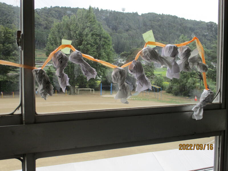 台風14号の接近に伴い、天候が気になるところです。学校では、高学年が”てるてる坊主”を作製してくれました。それを見た瞬間、心がほっこりするとともに、運動会を成功させたい意欲等を感じ、とても嬉しくなりました。これで、きっと天気になるはずです。