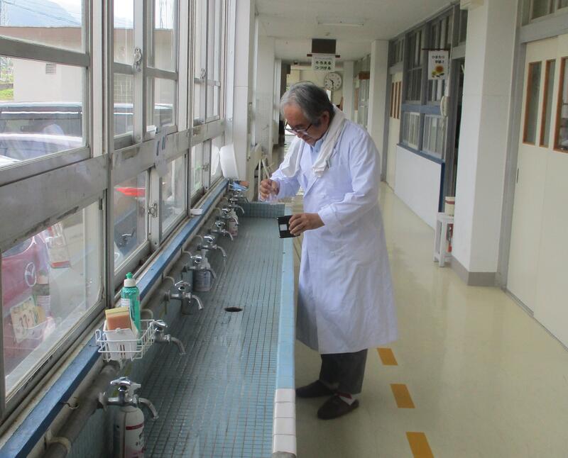 昨日(6/7)に、学校薬剤師の花岡先生に、プールの水や水道の水の点検をしていただきました。