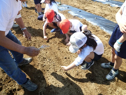 5月10日に、野菜の先生をお招きして、1・2年生が学校の畑に