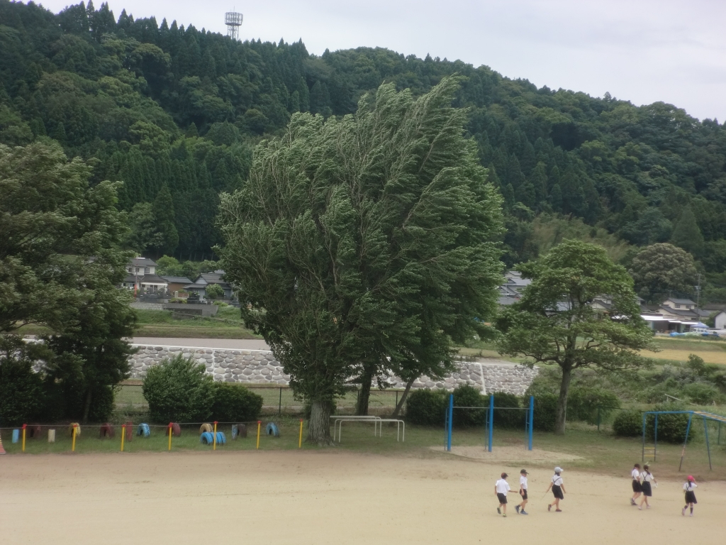 大津東小学校区では、阿蘇の火口瀬から吹いてくる強風を