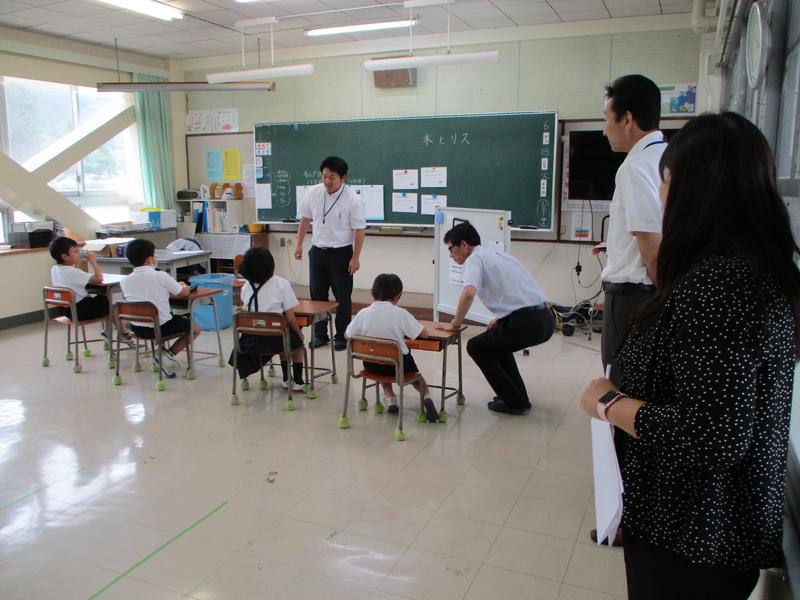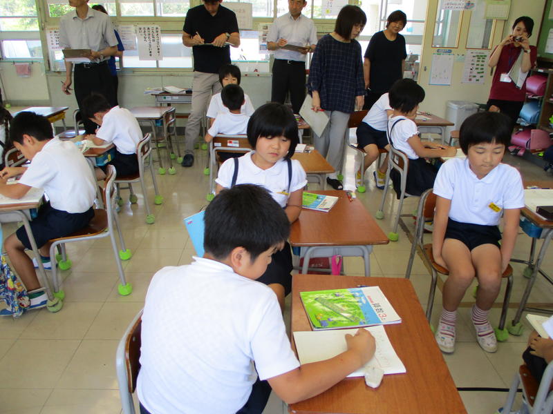 6月24日3校時に、複式学級である2・3年生の研究授業を行いました。本校の研究テーマ「主体的に学び、考えを表現する児童の育成」を目指し、効果的にグループ学習を取り入れ、学習リーダーを育て、発表力をつけさせていく授業でした。ICTを用い2つの学年全体でできること、別々に効果的に行うことも工夫されていました。