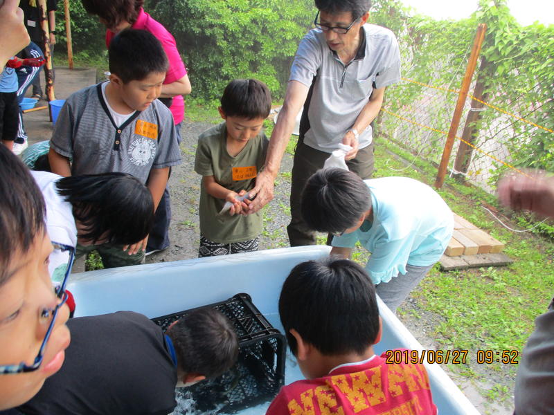 6月26・27日に大津町特別支援学級合同キャンプがありました。このキャンプは大津町内の全小学校の児童が参加しています。毎年100名をこえる参加があり、にぎやかで活気あふれるキャンプとなりました。あいにくの雨で室内での活動となりましたが、元気に楽しく過ごしました。大津東小学校は「入所式の進行」の係でした。緊張した様子でしたが、人前に立って、堂々と大きな声で発表する姿が見られました。主な活動チャレンジランキングやニジマスつかみ、木工ペンダント作りなど、一生懸命取り組むことができました。また、楽しいで終わるのではなく、集団行動での生活、細かな時間の使い方を考えながら過ごした二日間となりました。この経験したことを学校生活、家庭の中で生かしていきます。