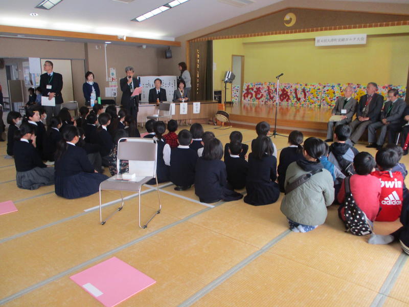 大津町では、町内の史跡を覚え、ふるさと大津町の歴史に興味を持つとともに、郷土愛を育てることを目的として「大津町史跡カルタ」大会が1月18日(土)に町老人福祉センターで開催されました。そこで本校のカードゲームクラブの4名の児童も大会に参加しました。緊張感のある雰囲気の中でカルタを探す姿が印象的でした。大津町の歴史に触れる良い機会となりました。