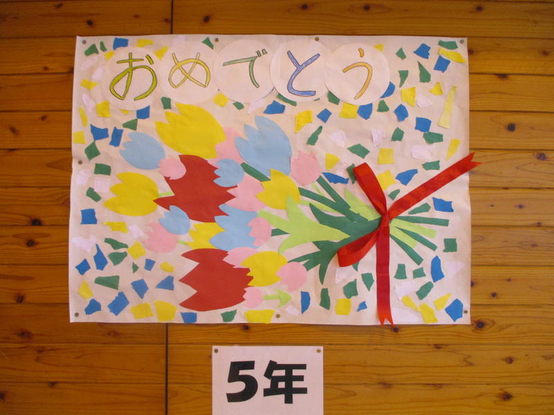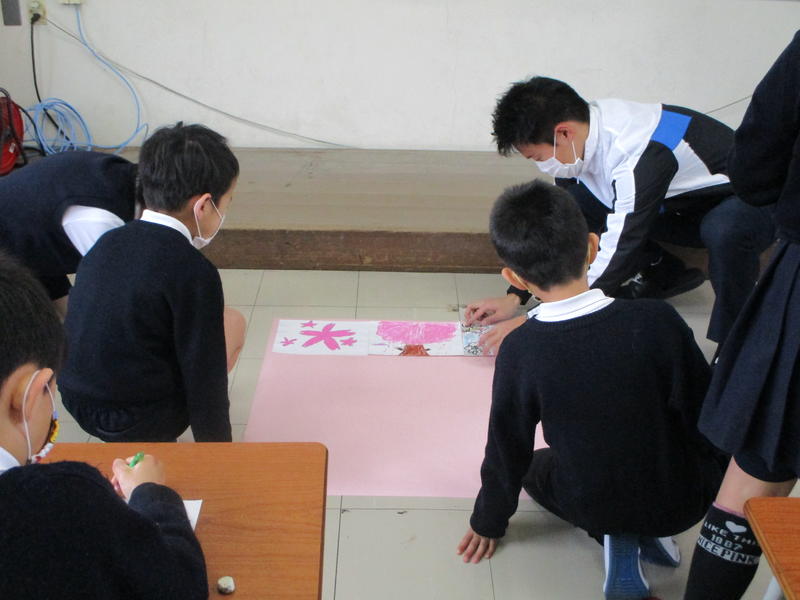 6年生の卒業式には、在校生は参加できないため、卒業生への思いを広用紙に表しました。体育館に貼って、思いを伝えます。
