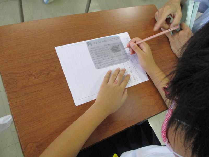 短い物語を読み、思ったこと、感じたことを伝え合ったり、新聞の記事や4コマ漫画を読み、その出来事や話について感じたことを伝え合ったり、詩や俳句などから、感じたことを伝え合い、考えを共有し合うことを行っています。