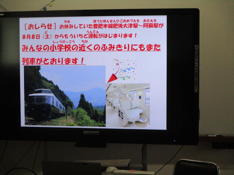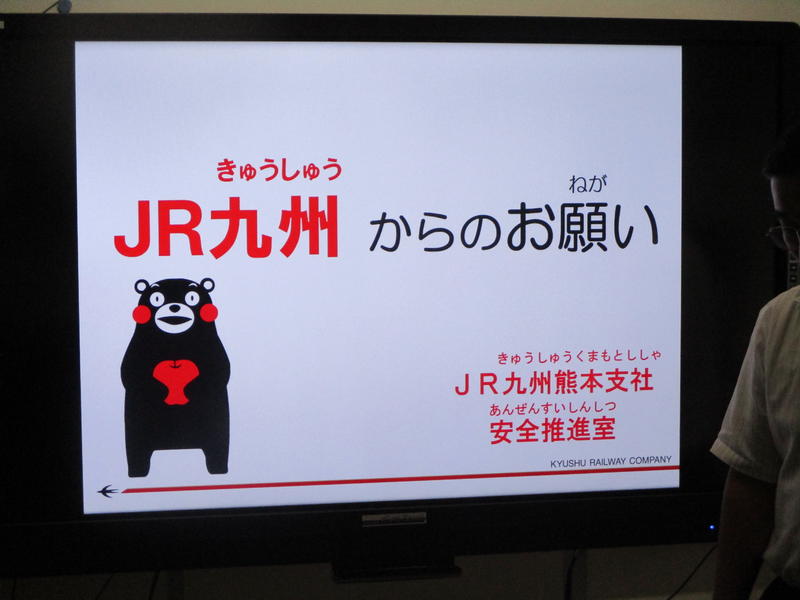 明日からのJR豊肥線の開通に当たり、JR熊本支社の安全推進室から講師をお招きして、リモートによる講話をしていただきました。