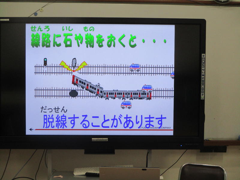 JRの電車の紹介から、こどもたちに気をつけてもらいたいことまで、しっかりとお話しをいただきました。
