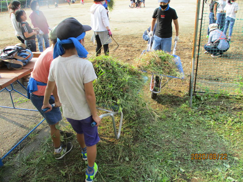 8月23日(日)7:00からPTA愛校作業でした。夏休みの最終日、翌日から学校が始まることもあり、子どもたち、保護者の皆様、学校応援団の皆様と職員で草取りや草刈り作業を行いました。