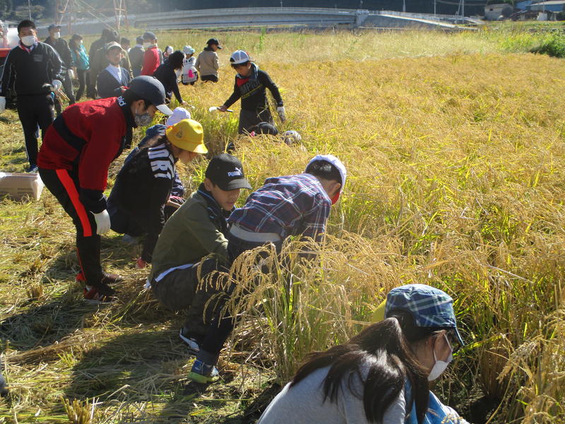 5年生が5月に種まき、苗床づくりをして、6月に全校児童で田植えをしました。今年は、ジャンボタニシが異常発生して、多くの苗が食べられることもありましたが、5,6年生がジャンボタニシを駆除してくれて、食べられた苗のあとに、また苗を植えてくれました。