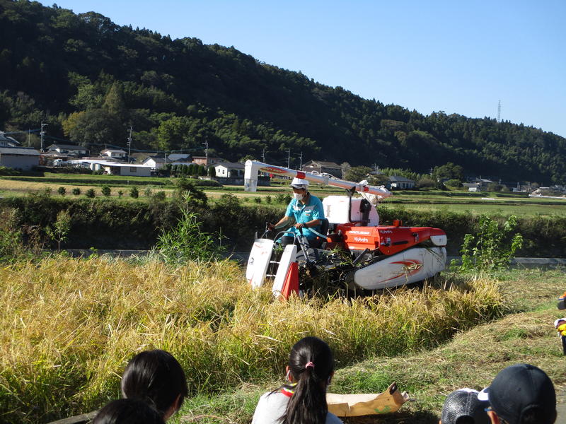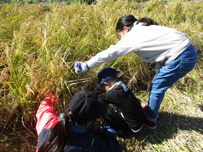 5年生が5月に種まき、苗床づくりをして、6月に全校児童で田植えをしました。今年は、ジャンボタニシが異常発生して、多くの苗が食べられることもありましたが、5,6年生がジャンボタニシを駆除してくれて、食べられた苗のあとに、また苗を植えてくれました。
