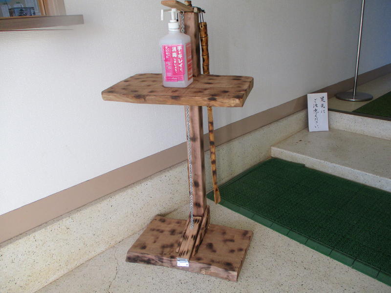 また、内牧の古庄様から、手作りの消毒液ポンプ機をいただきました。ありがとうございました。