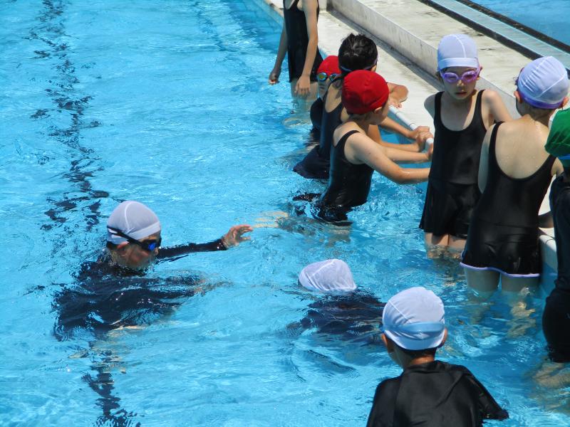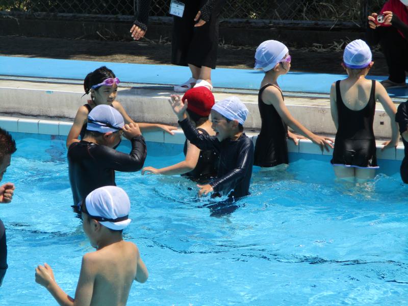 6月8日(火)3校時に、プール開きをしました。「楽しみにしていた人」と呼びかけられると、ほぼ全員が挙手。天気にも恵まれ、楽しくプール開きができました。「プールサイドは歩くこと」「ふざけないこと」「ゆっくり水に入ること」などの注意を確認し、準備運動のあと、プール開きを行いました。体育委員会さん、よく進行できました。