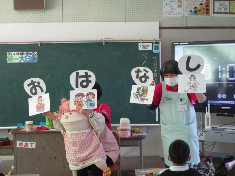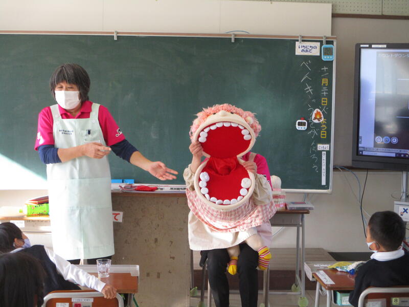 11月30日(火)に、菊池郡市歯科衛生士会の方々をお迎えして、1・2・3年生を対象とした、歯みがき教室を実施しました