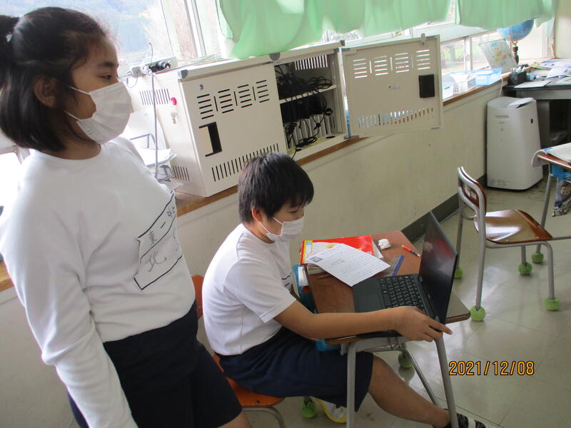 12月8日(水)5年生国語「大造じいさんとガン」の朗読練習において、子どもたちが、朗読の様子をタブレットで録画。それを見ながら、朗読の声の大きさや速さ、抑揚のつけ方などを評価し合い、朗読の質を高める取組を行いました。タブレット大活躍です。