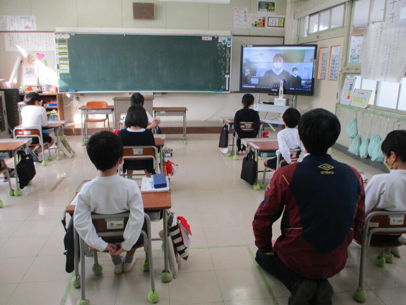 各教室では、電子黒板から流れる委員長の話を、集中して聞く子どもたちの姿が見られました。委員長の話の最後には、大きな拍手の音が響いていました。