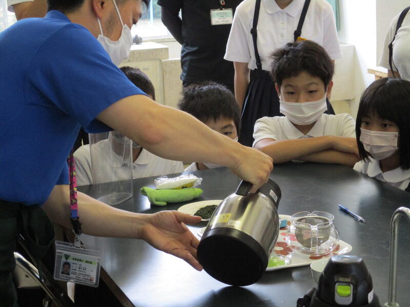 本日(5/24)、小学5・6年生は家庭科で「お茶のいれ方講座」をしました。
