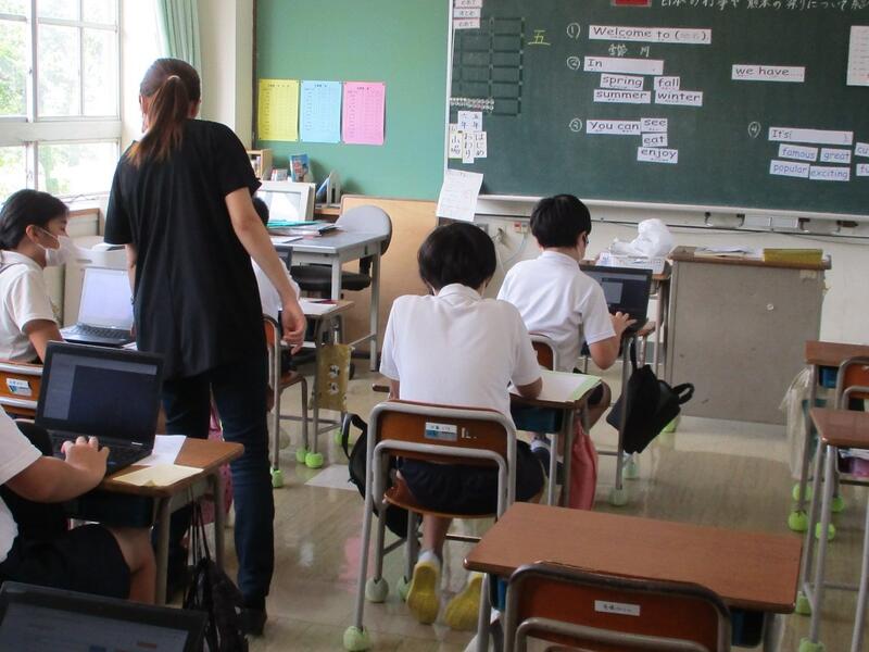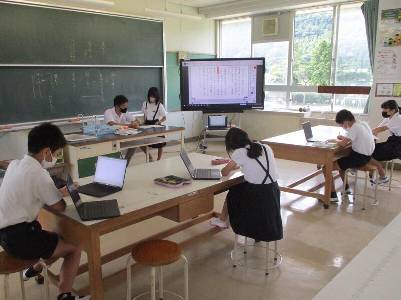 本日(6/16)の1校時。5年生は担任による国語の学習で、6年生は英語専科の先生による外国語の授業で、ともにタブレットを使用し学習していました。
