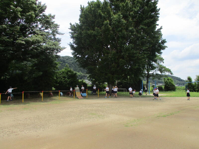 27日の昼休み、運動場のいちょうの木の下で楽しく遊ぶ子どもたちの姿が見られました。
